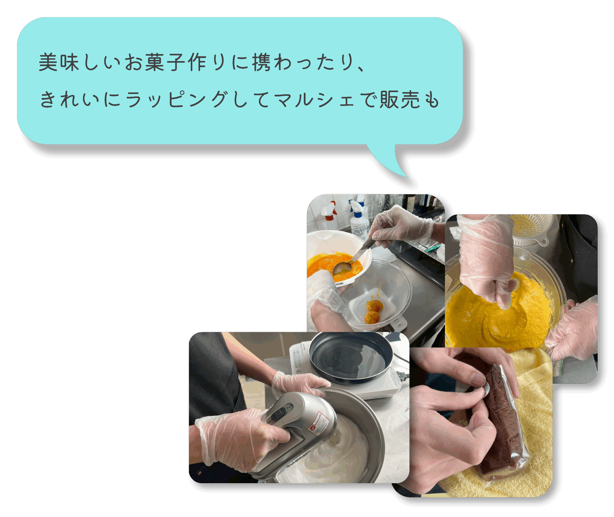 マルシェなどでお菓子や作品を販売するお仕事もあります。