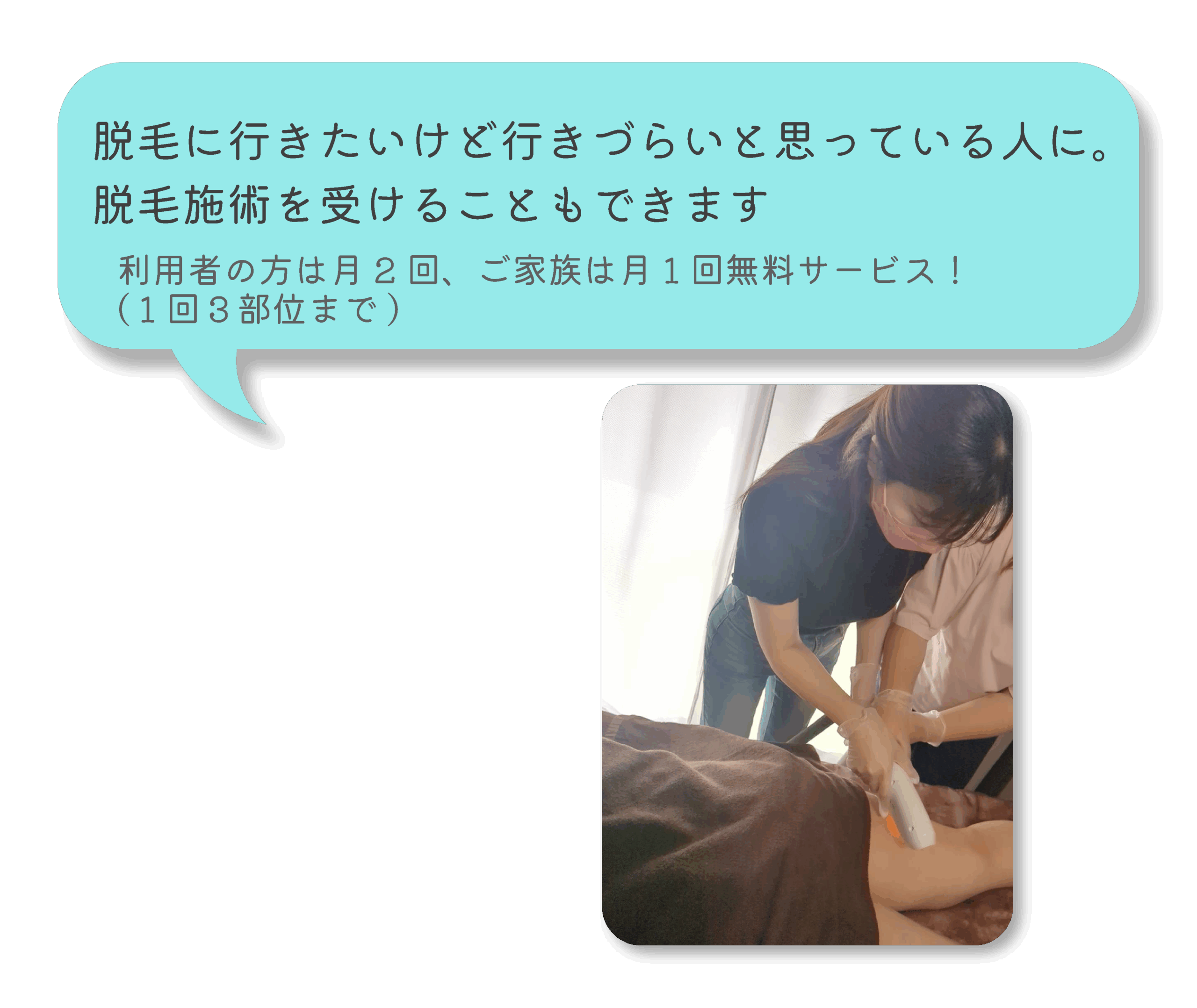 丁寧な指導のもと、実際に脱毛機を使った技術も取得可能!施術や接客をするときもスタッフと一緒なので安心です。